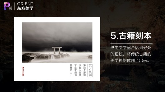 私家P学院第五期来袭,主页君不是吹牛,第五期内容完爆前4期。话说当欧美范儿成为主流的时候,如何才能设计出令人神往的中国风PPT?水墨画风格?No,那不过是徒有其形,并非东方美学的神韵。那么真正的东方美学又该如何设计呢?