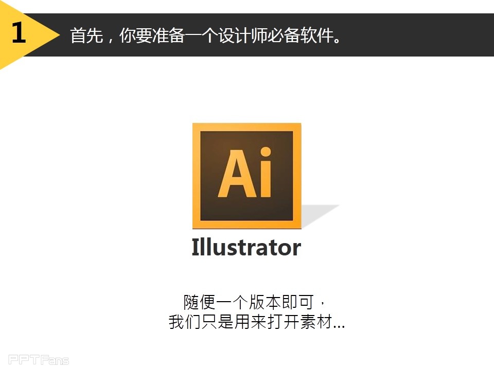 首先,你要准备一个设计师必备软件。Illustrator,随便一个版本即可,我们只是用来打开素材…