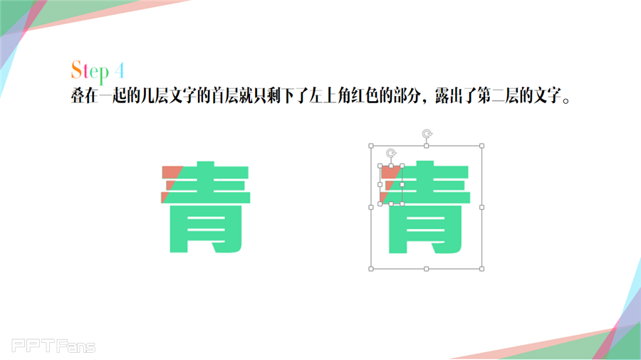 接着重复插入形状与文字相交就好,知道剩下最后一层青色文本留着打底
