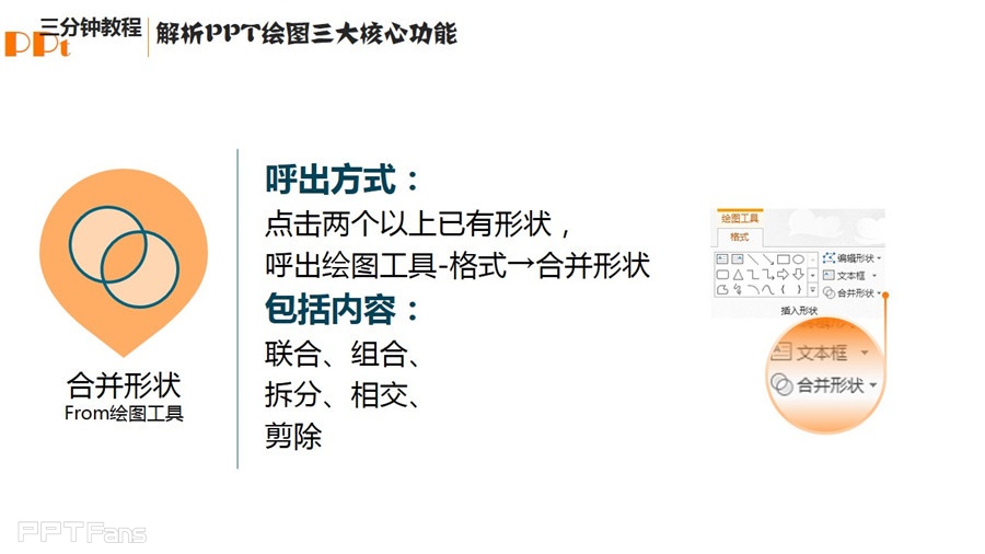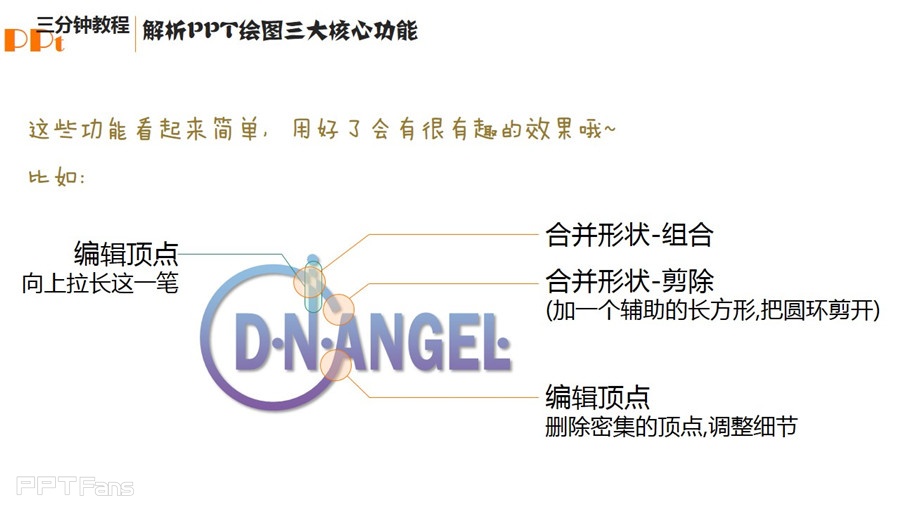 本期的教程全面涵盖了PPT绘图的三大核心功能:形状、编辑形状、合并形状。教程略长,但开卷有益,希望大家能够细细品味。