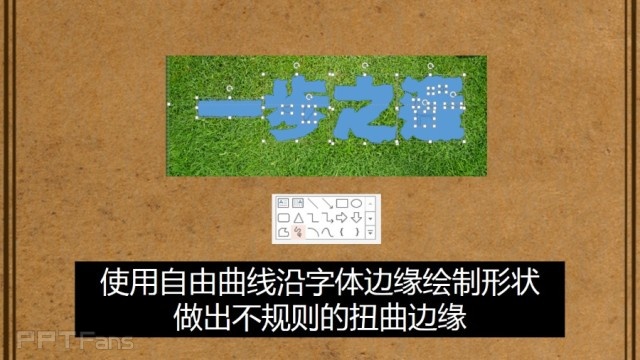 第三步:使用自由曲线沿字体边沿绘制形状做出不规则的扭曲边缘。