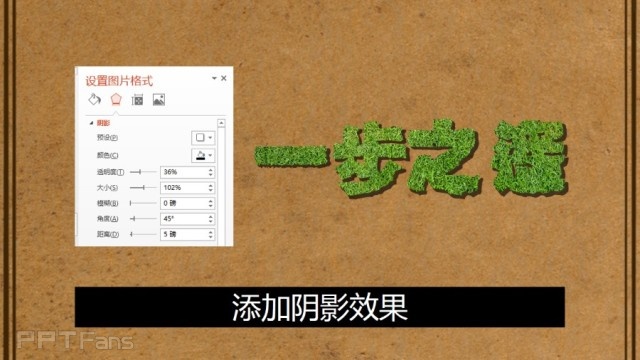 艺术字相信大家在PPT制作中用的很多,今天带领大家制作一种新的艺术字--草坪字。什么是草坪字呢?就是文字看起来像草坪。制作方法其实较为简单,把文字用草地的图片填充背景,字体加以变形,并制作阴影,即可轻松获得想要的效果。