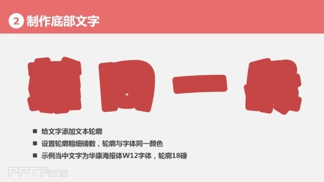 - 示例当中文字为华康海报体W12字体,轮廓18磅