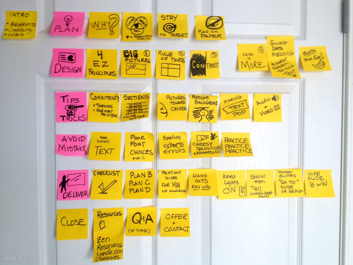 2.书写和摆放的过程也是梳理逻辑的过程:你能想到的几乎所有宏观的问题,都会清晰地反映在这些便签纸所呈现的缩略图上。调整好后,开始做PPT,直接上模版(指内容的样式,非特指PPT母板),内容严格按照逻辑框架填充,可以起到事半功倍的效果。
