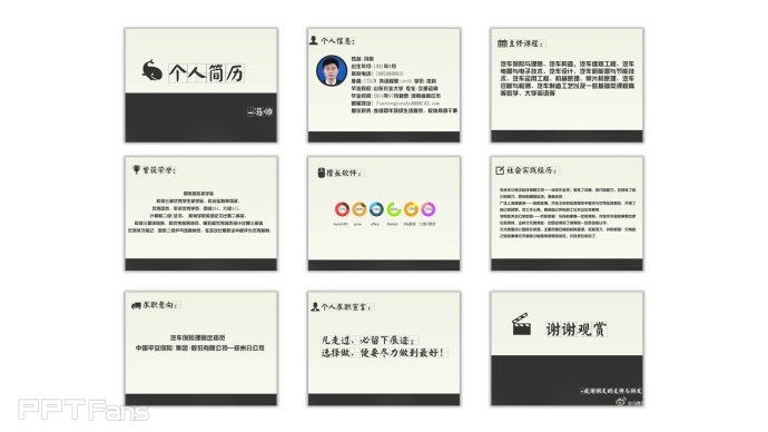 将word简历的各部分分拆到PPT中,或简单罗列,或图文并茂。