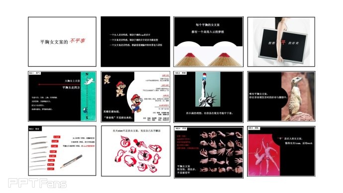 制作者欲扬先抑,从“平胸”出发,引起注意,然后一步步证明自己的不“平”凡。很有心思,也让观者会心一笑。