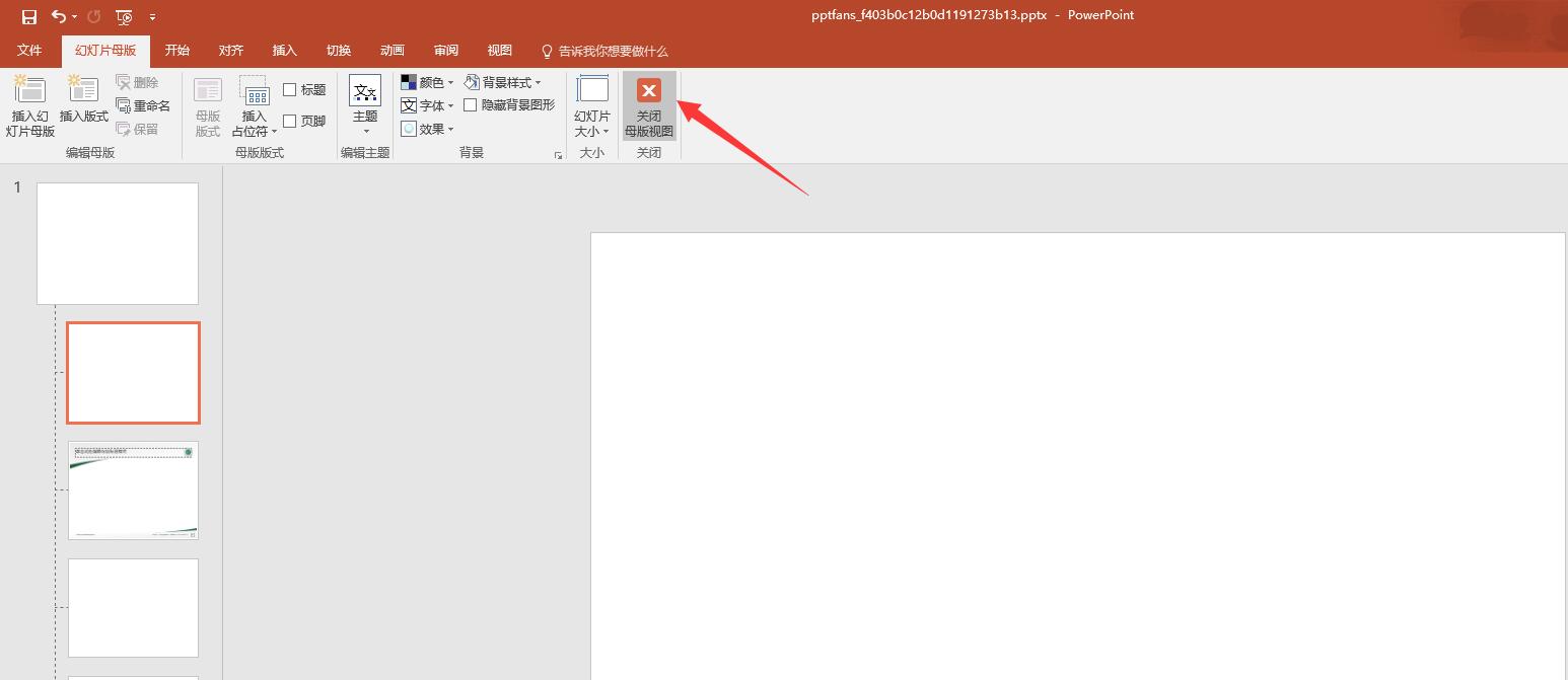 第3步:关闭母版视图,并回到编辑状态