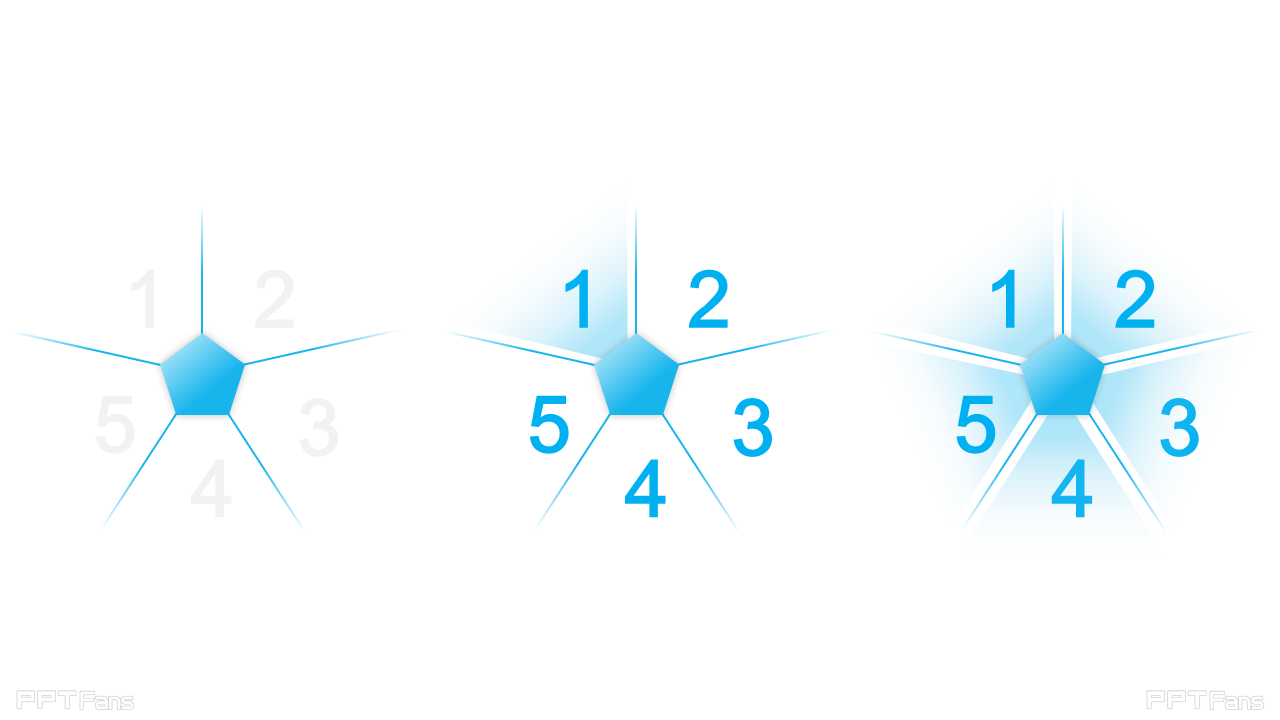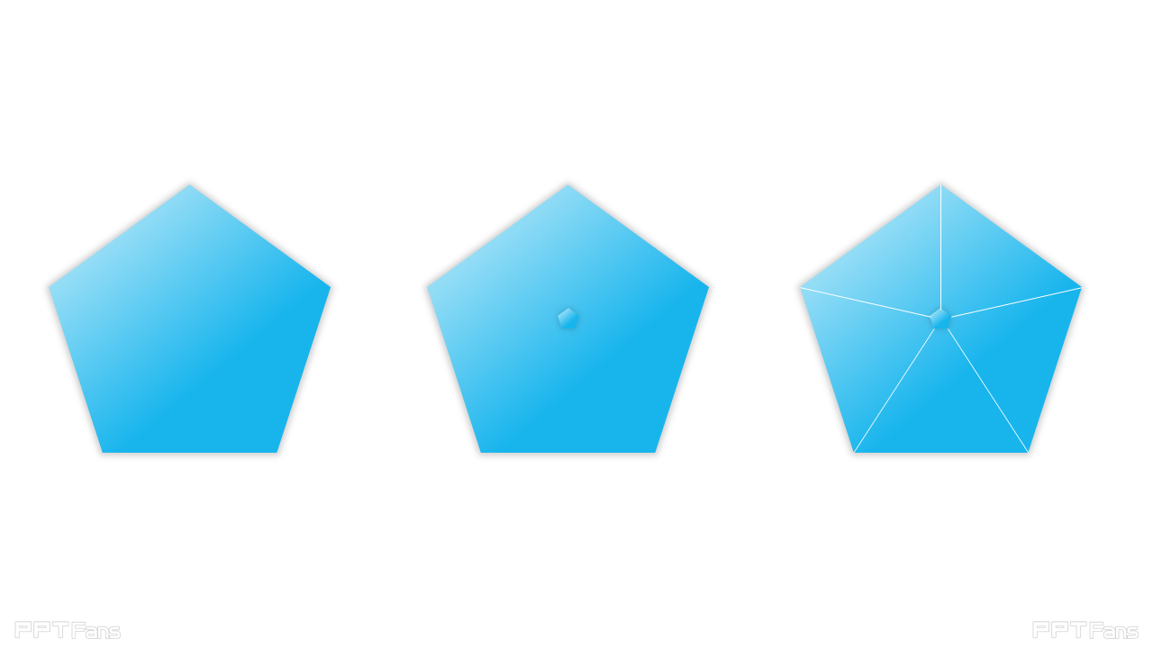 Yoyoo的解决办法:很简单,PPT插入图形里面不是有三角形、正方形形、五边形、六边形....十二边形么?下面是用五边形来做PPT区域的五等分。