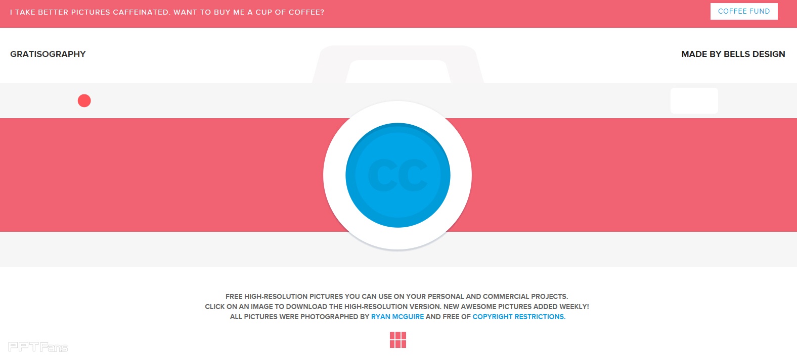 Gratisography 提供免费高分辨率的图片,可随意用于个人和商业项目。所有照片都是由贝尔设计(Bells Design)的 Ryan McGuire 拍摄。唯一不足的是图片数量有限。