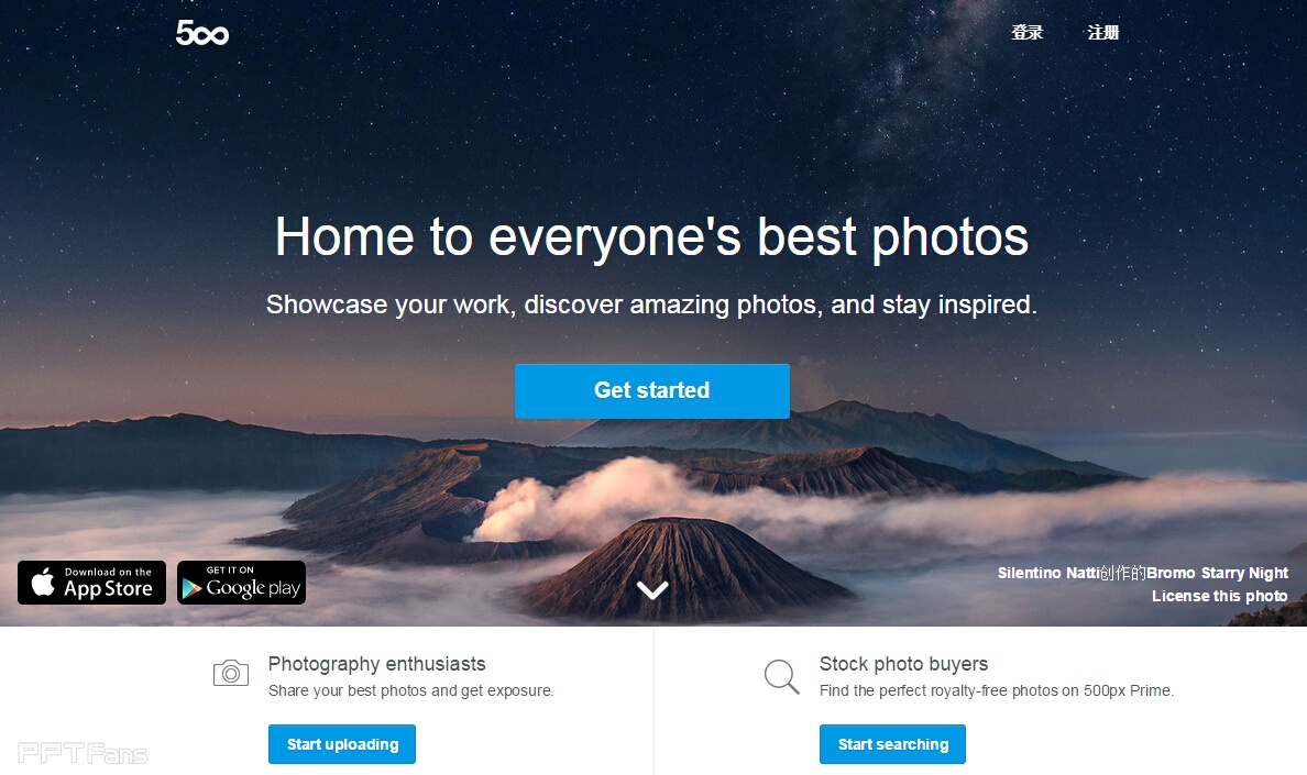 500px是一个致力于摄影分享、发现、售卖的专业平台,以风景摄影图为主,图片有版权,使用须注明出处。网站加载较慢,有时会不够稳定,但瑕不掩瑜,图片的质量的确不错~