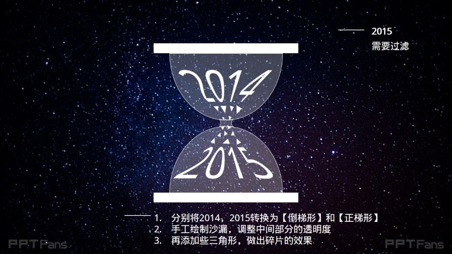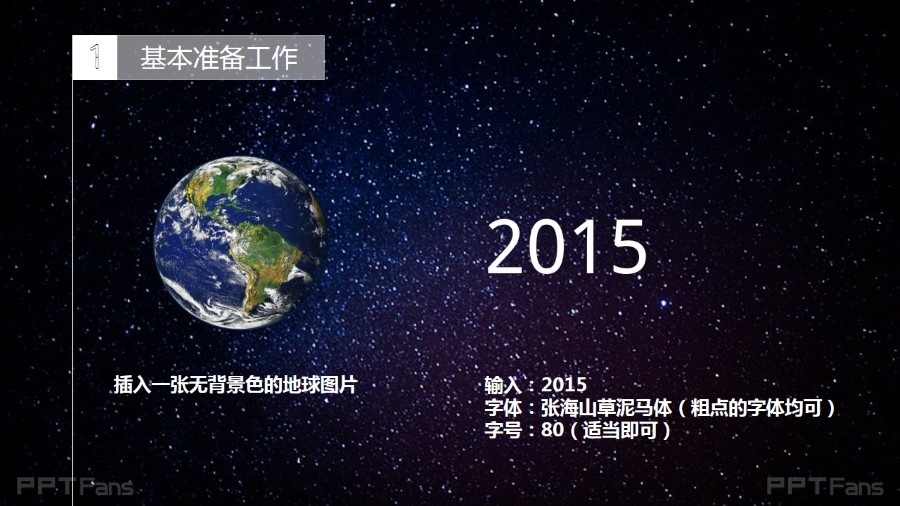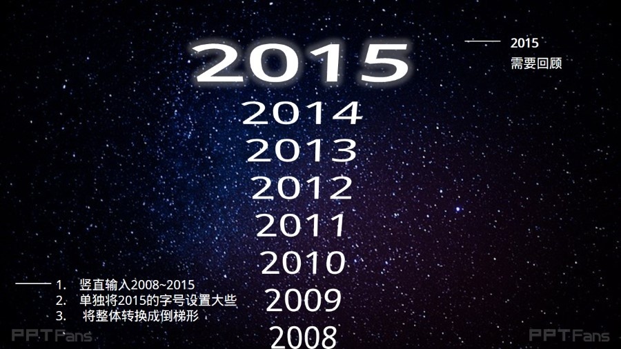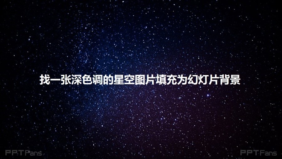 先来找一张深色调的星空图片填充为幻灯片背景。