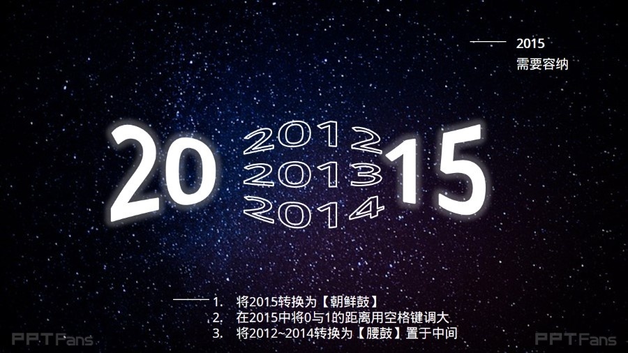 3.复制2014,将4改为5即可(通过手动旋转,调位置)