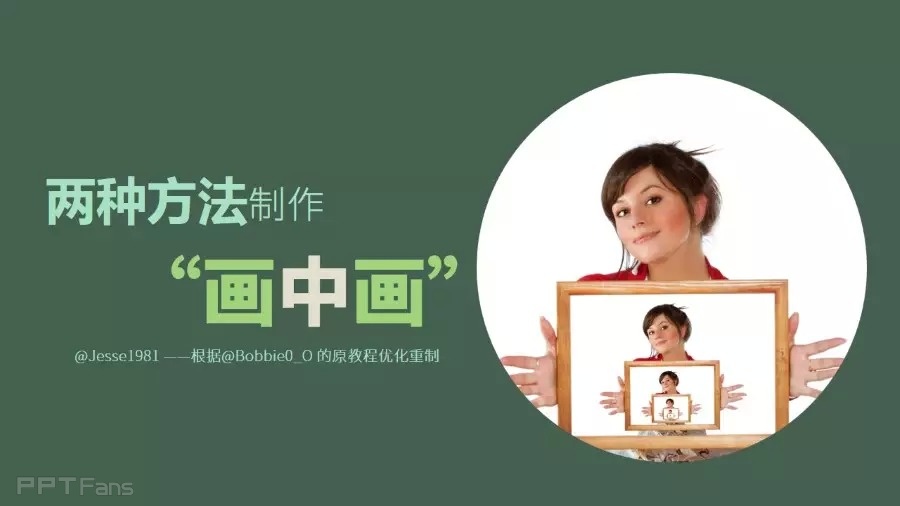 今天的教程,用PPT两种方法制作画中画的效果。画中画的效果,我们再“三分钟教程(106):画中画教程”和“三分钟教程(107):画中画教程完全攻略”中均已介绍过,如果你已经掌握,可以忽略本次教程。