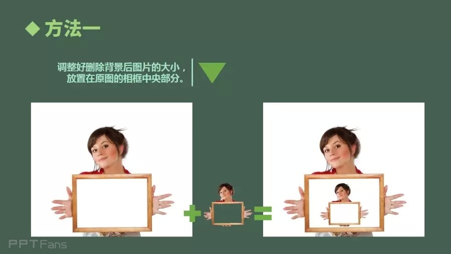 调整好删除背景后图片的大小,放置在原图的相框中央部分。