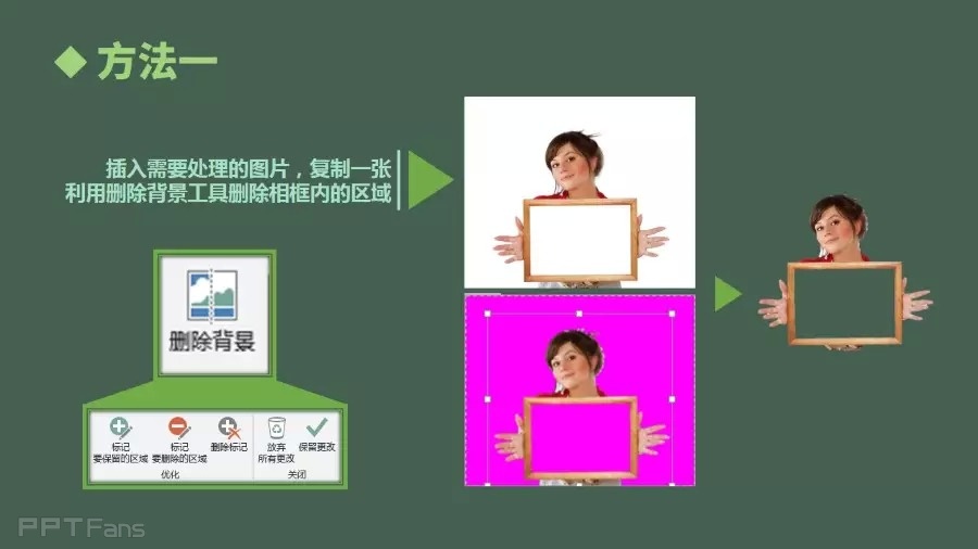 插入需要处理的图片,复制一张利用删除背景工具删除相框内的区域