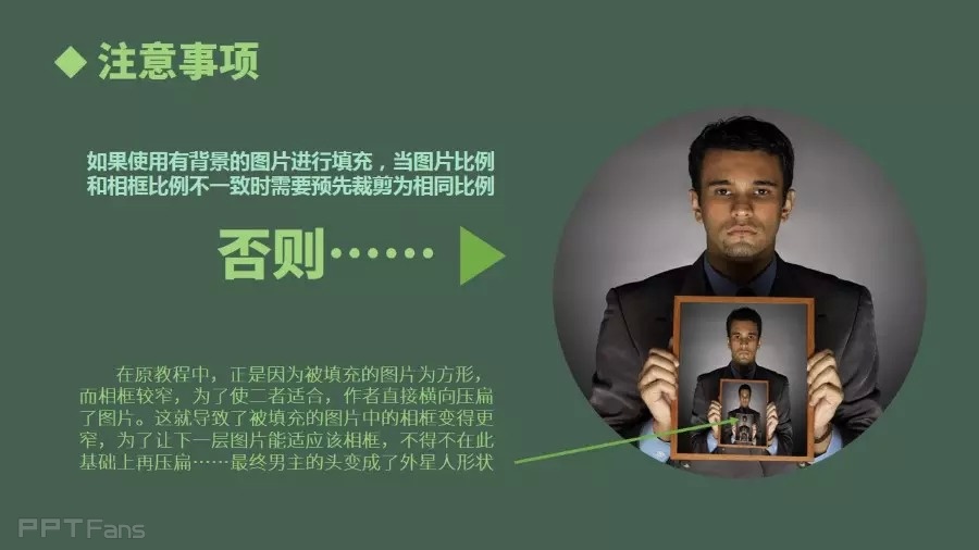 如果使用有背景的图片进行填充,当图片比例和相框比例不一致需要预先裁剪为相同比例。