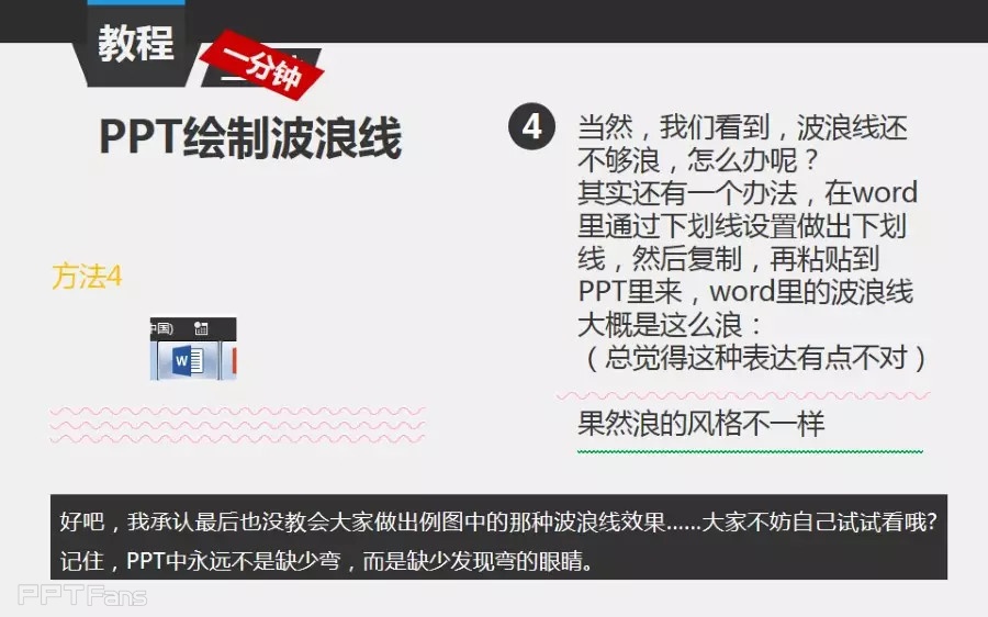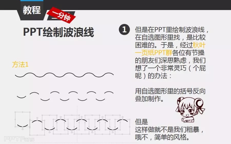 波浪线一直都是PPT的痛,一直找不到直接画波浪线的工具。通过这次教程的介绍,你就不再怕怎么在PPT中绘制波浪线啦!原来就这么简单。