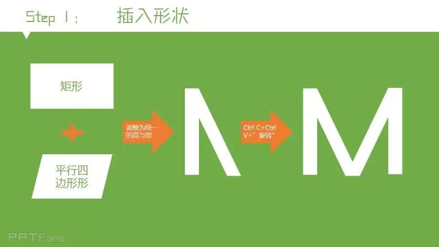 友情提示:作者在制作字母M时虽然只用了矩形和平行四边形,但制作后面复杂字母的时候,只是这两个形状是不够用的,灵活使用形状剪除和编辑顶点,才能制作出符合需求的效果来。