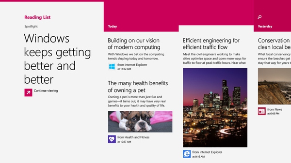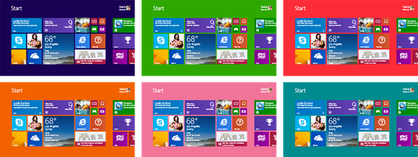 另,为何 Windows 8.1 更新后默认壁纸是黄色的呢?因为本身黄色不适合作为开始屏幕上的磁贴颜色,会造成文字变黑的结果。黄色同时是中性色,冷暖不定。到了 Windows 8.1,桌面变为黄色,广告图中多是中等正方形状态。颜色上,弱化它;功能上,不强调它。微软希望大家更多地使用 Modern 应用,而不是桌面,趋势。)