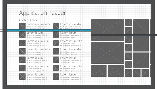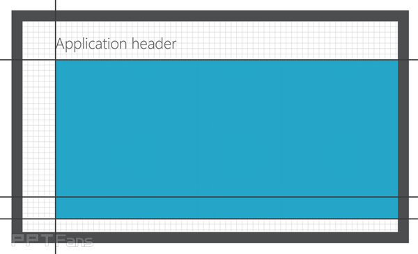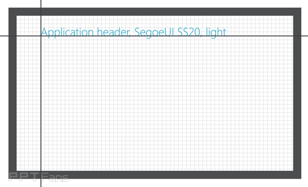 页眉的基线应该为距离顶部 5 个单元或 100 个像素。页眉的左边距为 6 个单元或 120 个像素。Windows 8 页眉为 Segoe UI 样式集 20 细线。