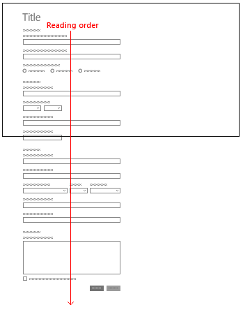 将两列布局用于仅能进行有限垂直平移的短表单。 两列布局在横向充分利用了屏幕空间。 请记得为两列之间保留足够的用于装订线的空间。