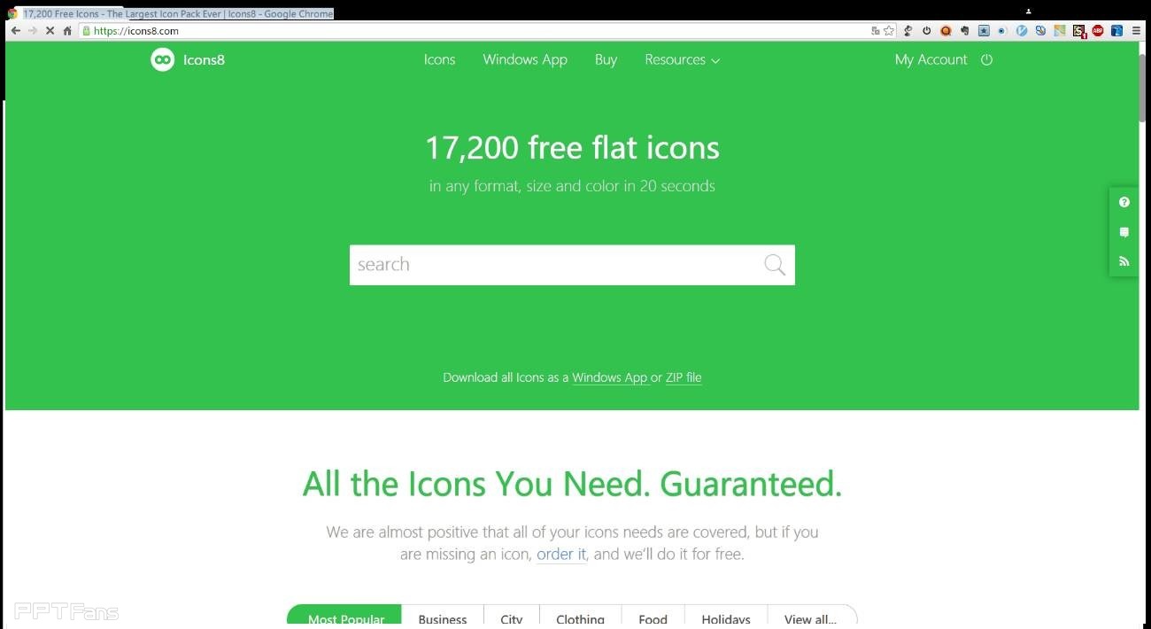 设置好之后,我们只需点击Download来保存图标,应用到PPT中即可。PS:第一次保存时会提示注册账号,免费注册哦。PPS:该网站也提供了桌面端软件,可以在https://icons8.com/app/ 这里免费下载(支持Pc和Mac),操作体验跟网页端类似,上手容易,没网的时候也照样使用。PPPS:也可以在该网站的Resources频道,直接下载Icon到本地使用。