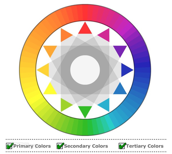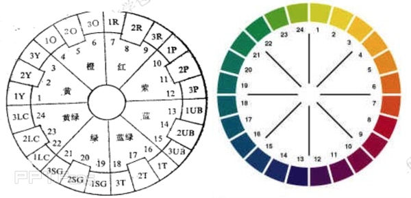 1)颜色在等量的黑白即明度环是协调的。(即平行的圈圈里面)