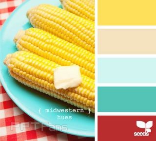 玉米的大块明黄色显然就是画面中主导的颜色,再用两个降低纯度的颜色相对小面积为辅助。
