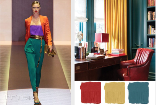 同样,再时尚领域和室内设计都可以应用起来,色调比较鲜亮活泼,也就是我们常说的“撞色”的感觉。
