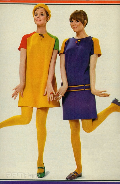 1967年vogue杂志里的照片,红绿的小面积运用,和大面积的黄紫色搭配。