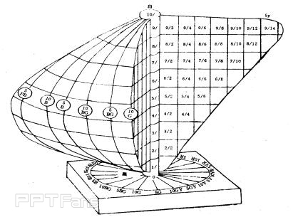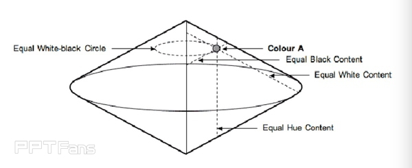 这个模型的名字叫做Ostawald color system, 是由德国物理化学家弗里德里希·威廉·奥斯特瓦尔德发明的!