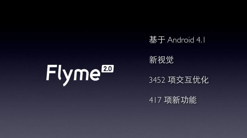 Flyme 2.0 系统是基于安卓 4.1 版本开发,采用了全新设计设计,进行了 3452 项交互优化,新增了 417 项新功能。