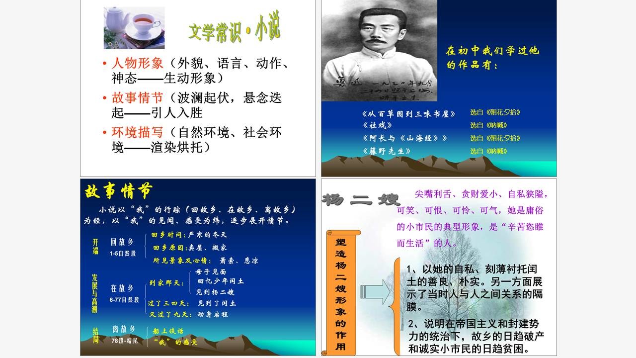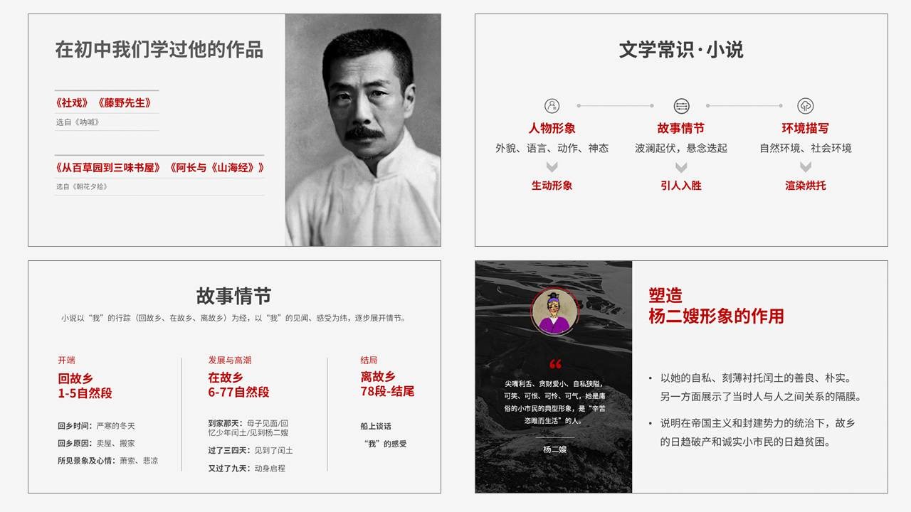 这是一套语文课件,内容跟鲁迅先生的故乡有关。坦率地讲,初次看到这套 PPT 的时候,我真是被它丑到了。为什么这么说呢?因为很多老师们,由于不太注重设计方面的东西。所以,很多课件中使用的设计元素,还停留在世纪初。而且,页面排版混乱,不懂得如何对内容进行排版布局,才能够从视觉方面,让学生们更容易理解。