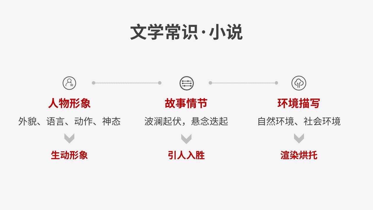 比如,我们可以把小说的3要素以及其作用更好地对应起来,可以使用同一种色彩,来增强二者之间的关联性。