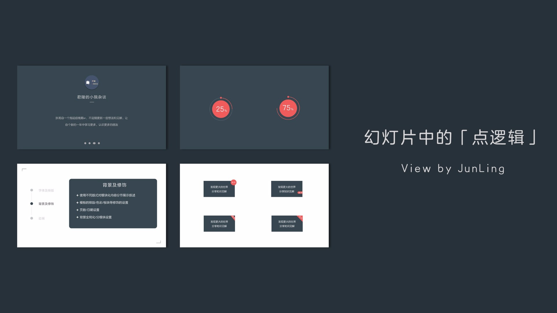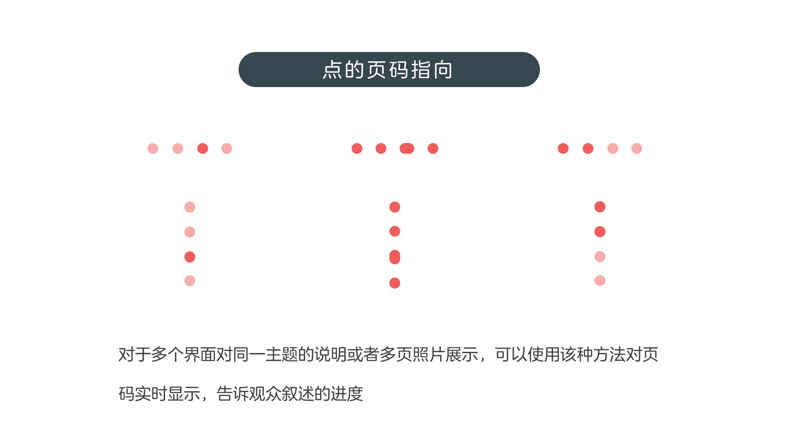 回归到幻灯片,这其中亦存在各种各样的点的应用。不同于手机应用的交互感,幻灯片中的点更多是一种视觉以及视觉传达的幻灯片叙述逻辑。