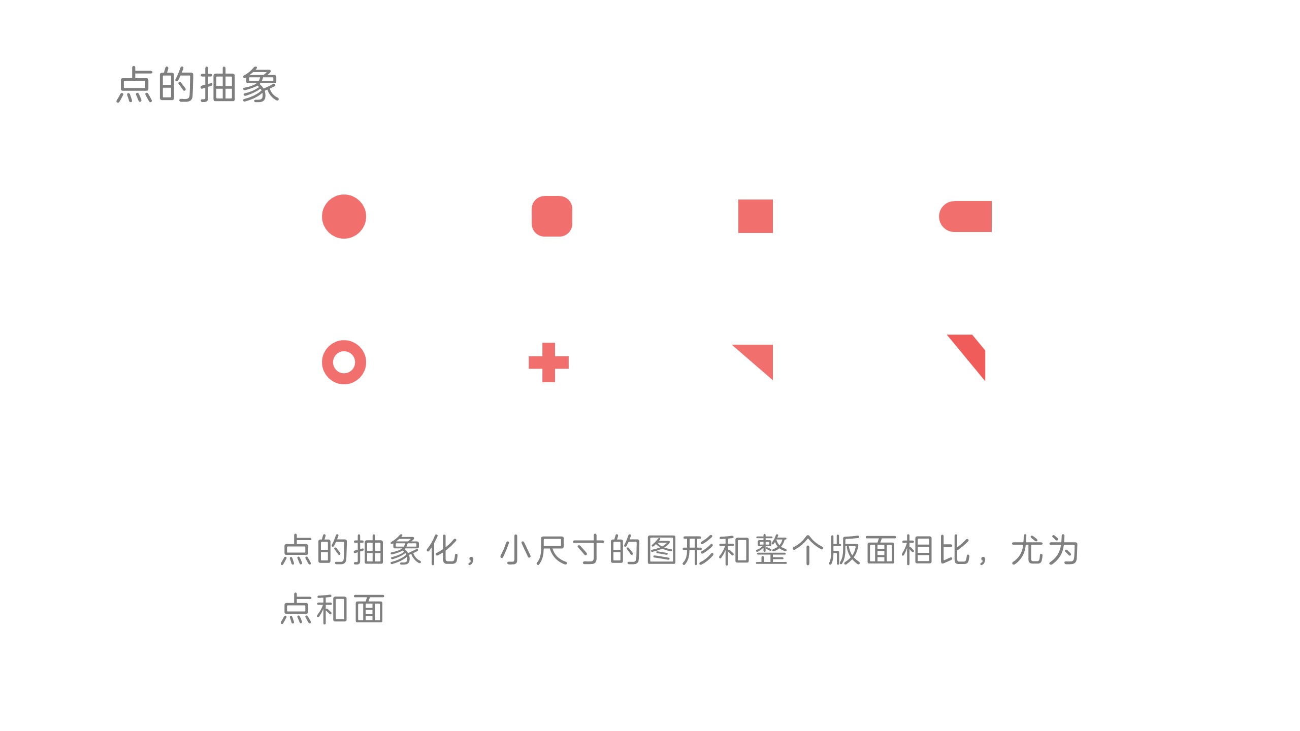 这里所说的点不仅是一个小圆点,而是和整个界面比较,这时候可以将圆角矩形,圆环,三角等均看做点。之所以这么抽象视觉感官,为了在幻灯片页面设计中,突破一些条条框框所带来的约束,寻得一种界面版面上平衡和协调。