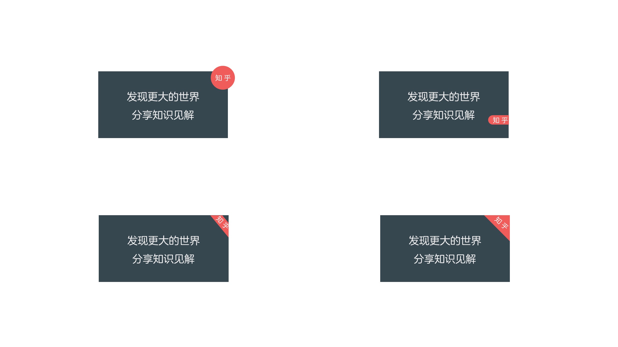 可以给颜色块、图片修饰处理,其位置处于被修饰对象的右上角或者右下角区域位置,这个也符合视觉阅读:上到下、左到右的习惯。