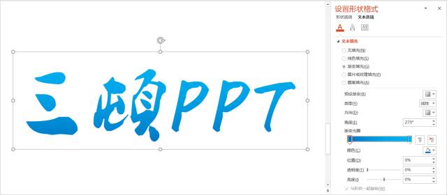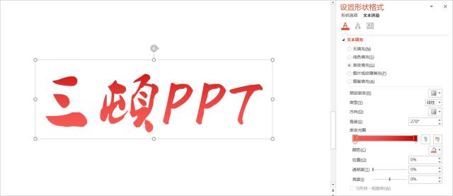 这种效果如何制作呢?还是和刚刚一样右键设置形状格式,在文本选项中选择渐变填充,调整光圈中停止点的颜色即可。