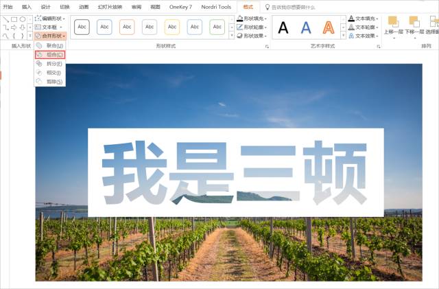 以上就是三顿想给大家介绍的六种常用的文字处理效果,分别用到了填充,图片工具以及合并形状的功能。