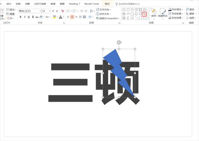 用到的同样是合并形状的功能,首先我们需要在绘图工具栏找到这个类似闪电的符号,然后把它摆在文字上方的合适位置。