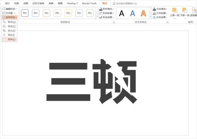 第三部分要给大家介绍的是用合并形状功能制作文字效果,常见的如镂空字,撕裂字等等。合并形状功能的介绍可以点这里查看。