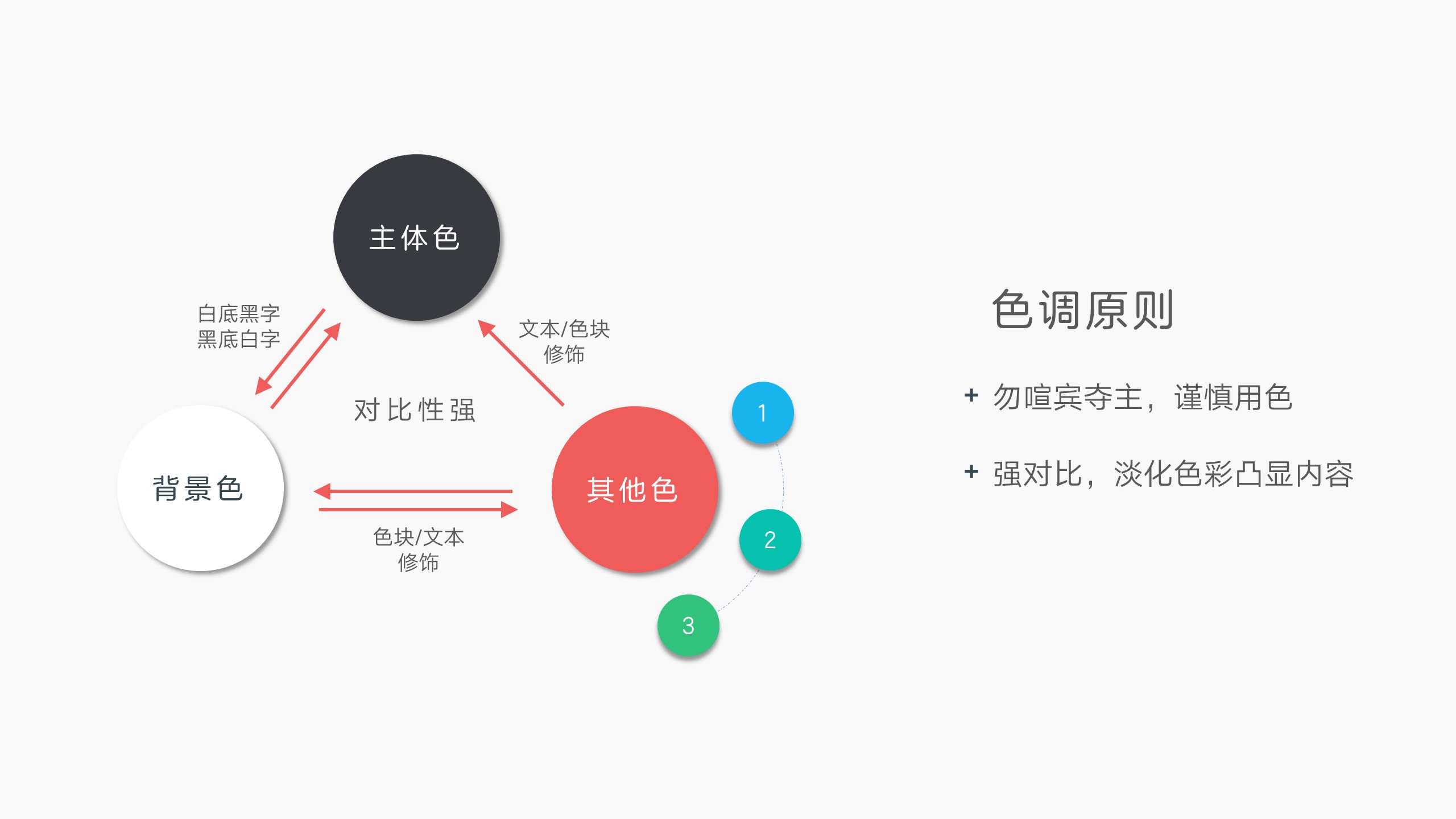 下图中三角关系,使用线条作为三个对象的关系导向,为了提高指示关系的辨识度,可以在箭头线条上加上精简文字说明。当然,你说四角,五角关系可不可以使用,答案是of course。但是对象越多,关系也就繁琐,只要能够分清主次即可。