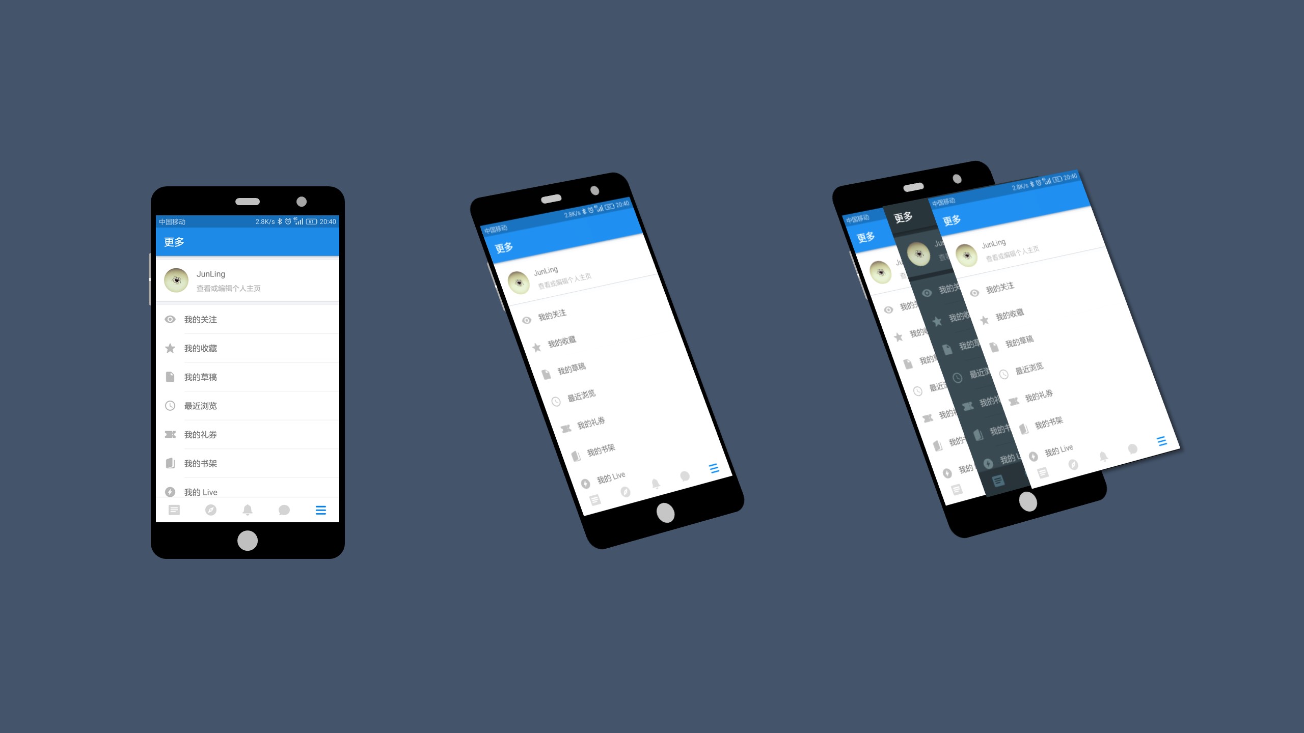 下图这种图片展示借鉴了Android任务窗口,可以仿照其具体特效加入一些动态展示的元素。