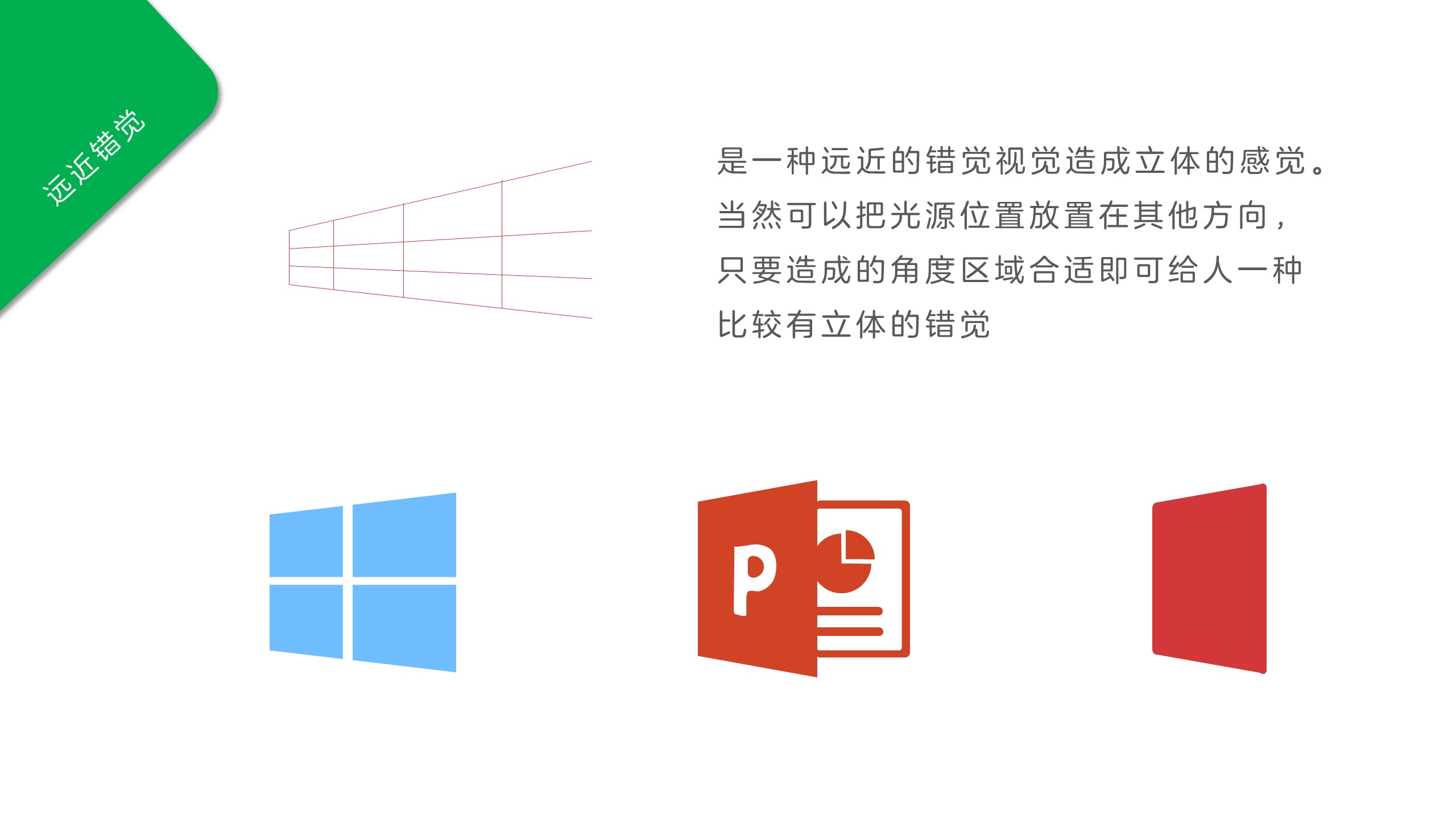 除了使用自带特效上的立体感之外,人眼还会因为观察景深、色彩变化带来的错觉立体感。下面就进行几种常见的说明,可以用在幻灯片之中,带来一点不一样的点缀。
