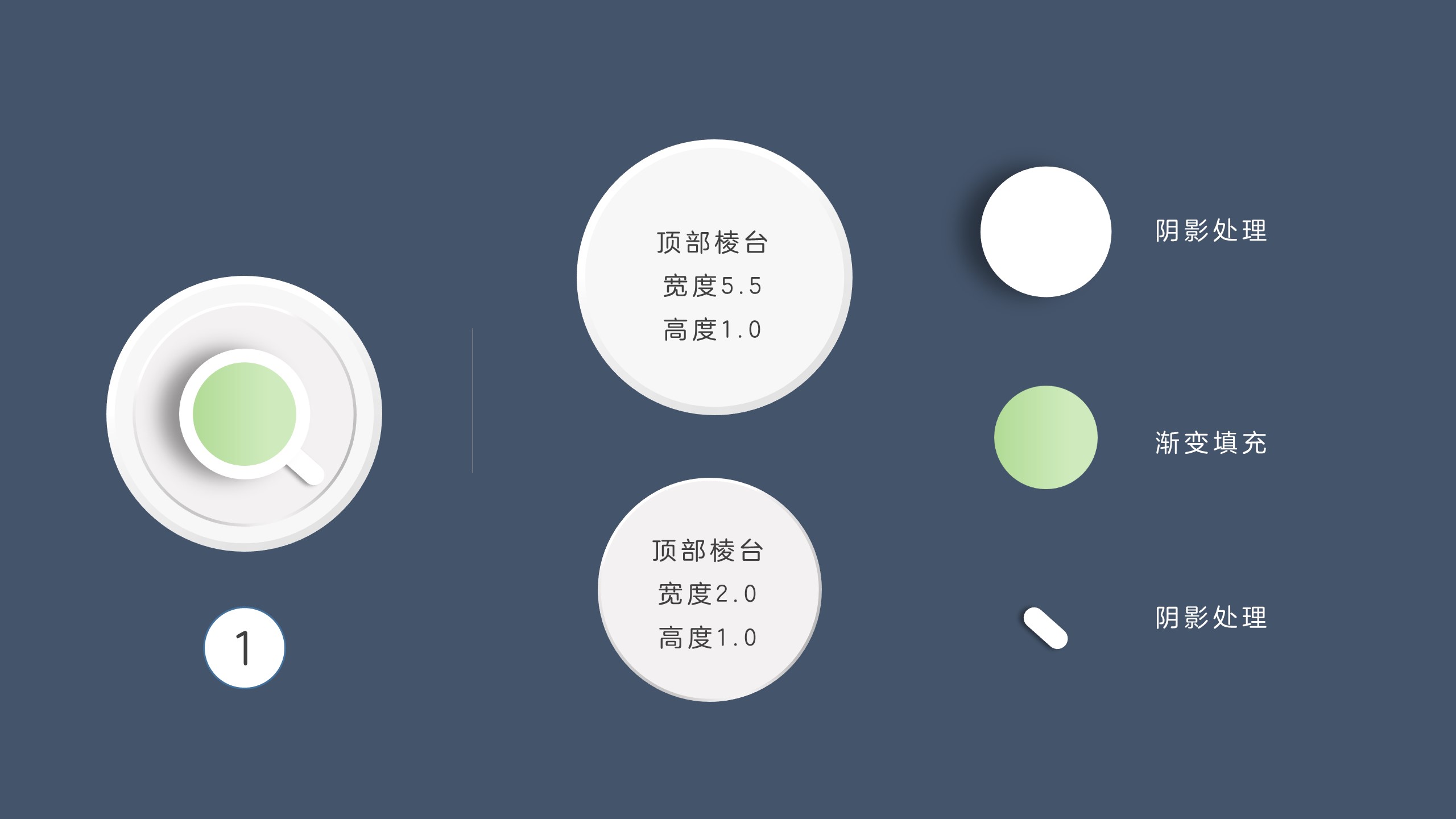 下图中使用两种不同的方式实现立体感觉,一种是使用三维格式,一种是使用渐变色彩