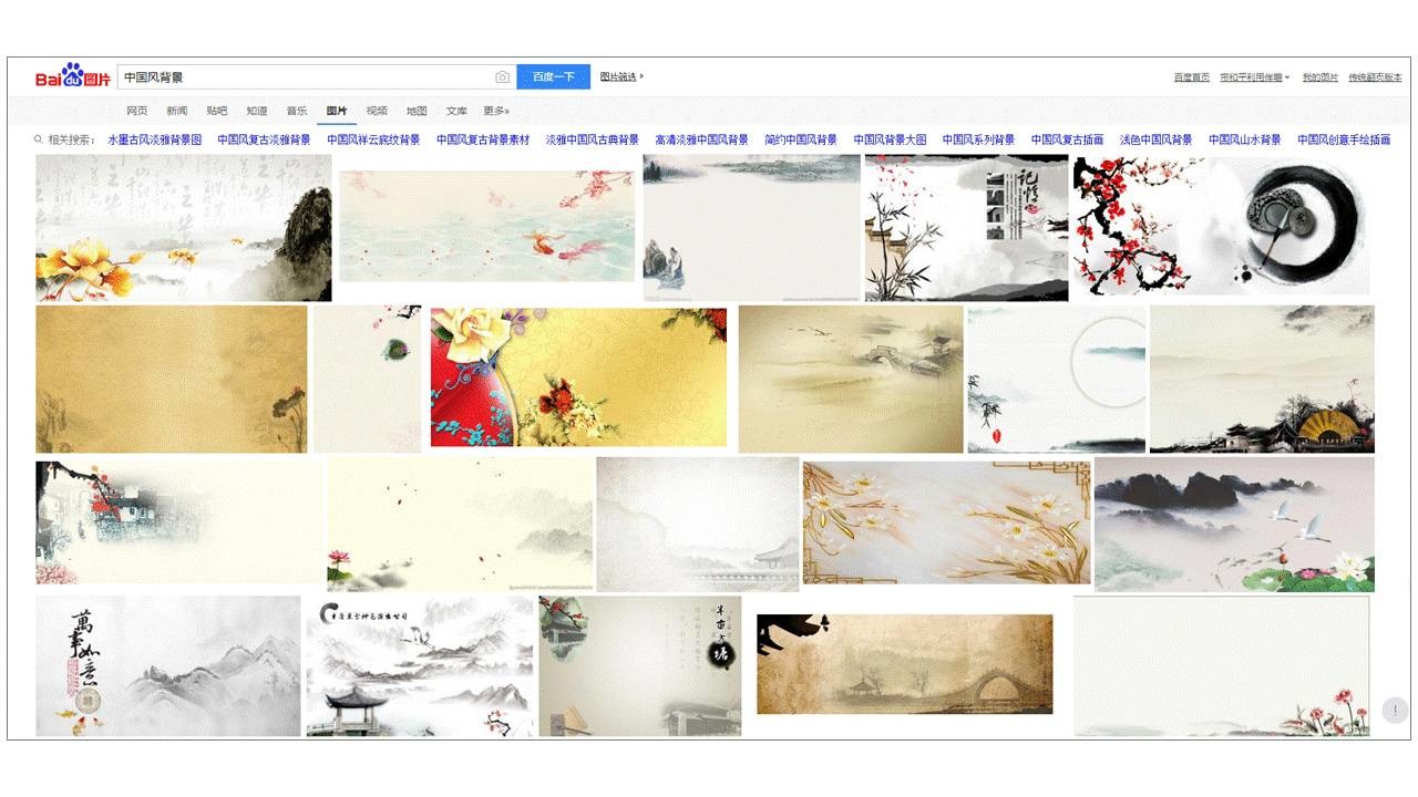 提到中国风的 PPT ,很多人大脑中自然就会想到一些古朴典雅的视觉印象,我在网上找了一些素材:
