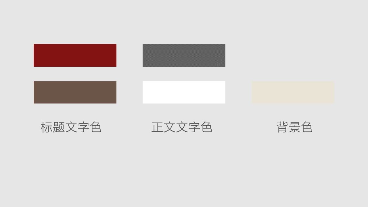 色彩。注意,低明度红作为标题色,深灰作为正文色。