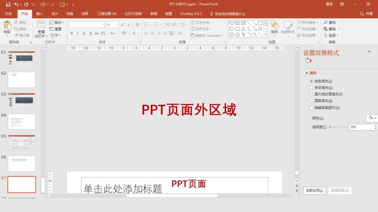 通过在PPT画布外面的区域“钉上四颗钉子”就能固定住PPT的页面。