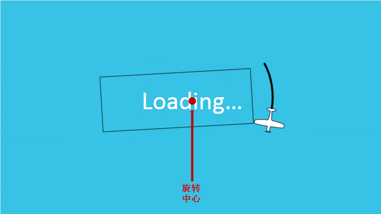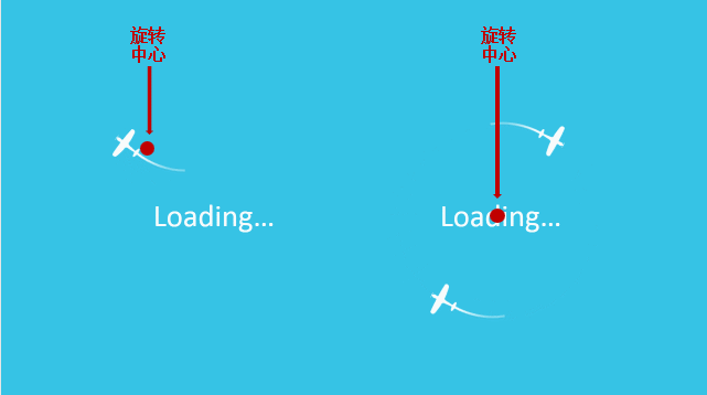 显然不是我们想要的效果,我们先来分析同样都是飞机,同样都是陀螺旋动画,为啥差距这么大呢?我们观察一个飞机的陀螺旋动画,发现它是绕着飞机的中心进行旋转得,而前面的两个飞机是对称放置的,组合后的形状的中心就是我们需要的旋转中心!再放上一个对比的GIF图,大家就看的明白了!