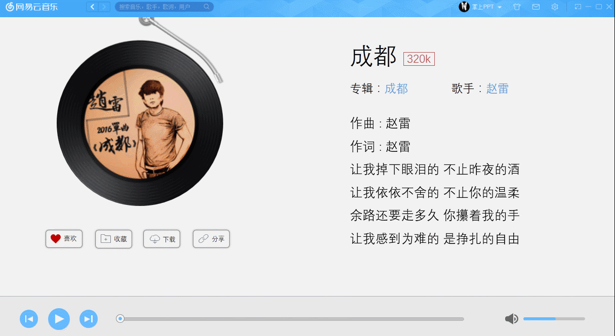 在写本文的时候,一直在用网易云音乐听歌,看着音乐播放界面。就做了一个音乐播放界面的动画。
